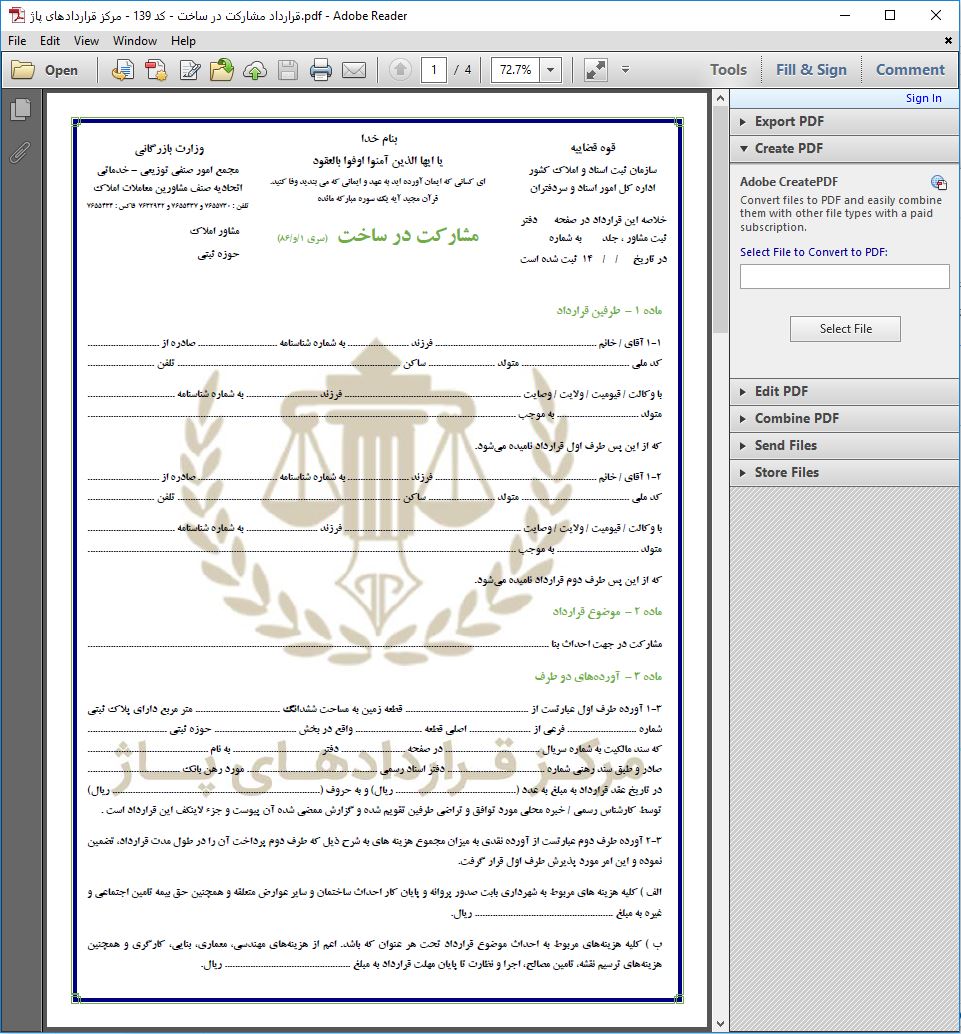 ویژگیهای فایل قرارداد مشارکت در ساخت: