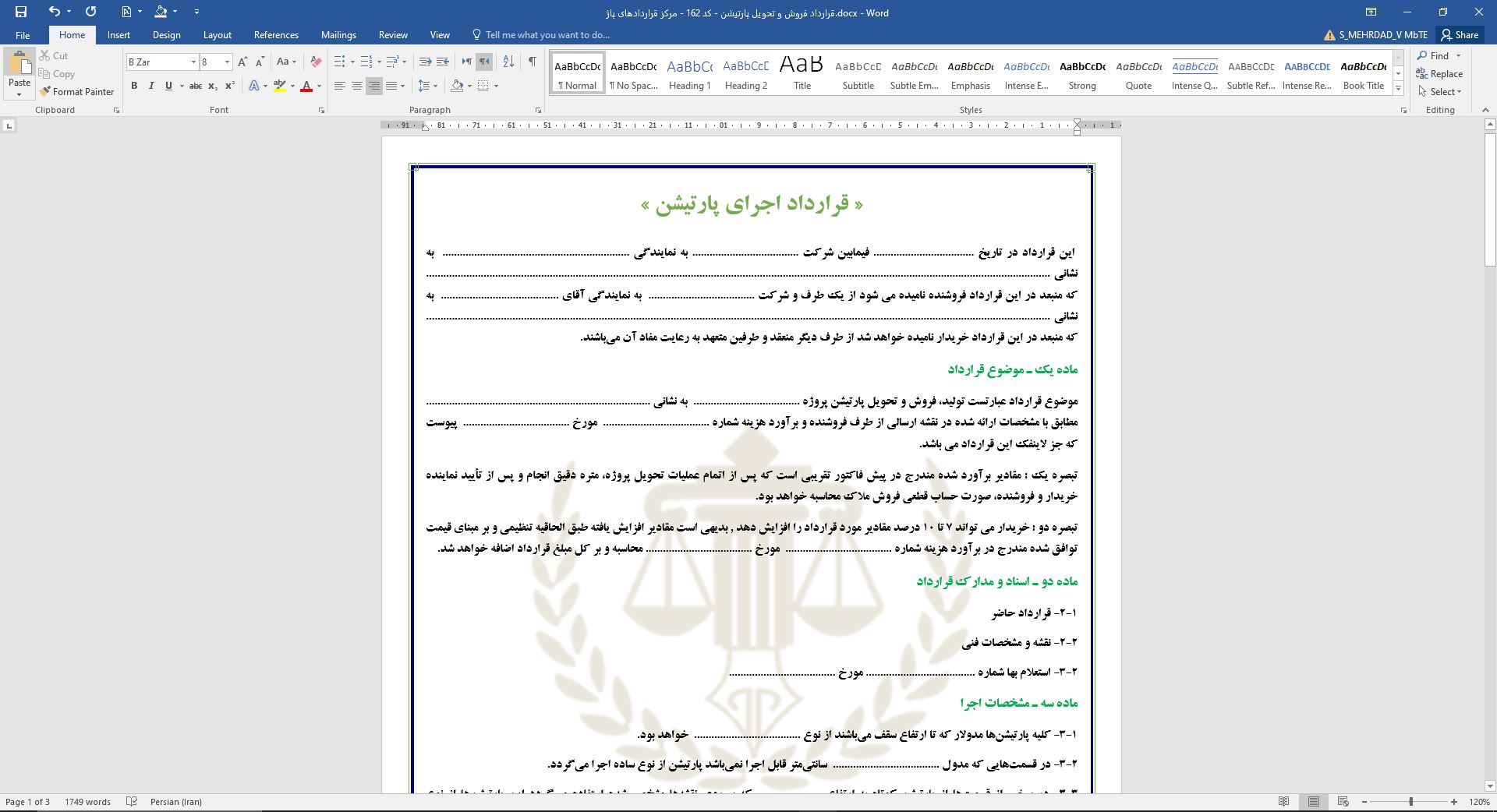 - شامل بندهای کامل درباره موضوع قرارداد، آوردههای طرفین، نحوه پرداخت، زمانبندی و شرایط فسخ