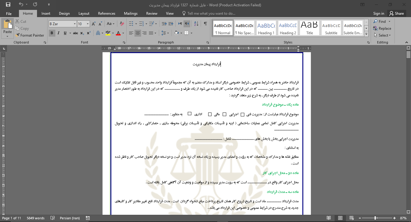 ویژگیهای فایل نمونه قرارداد پیمان مدیریت: